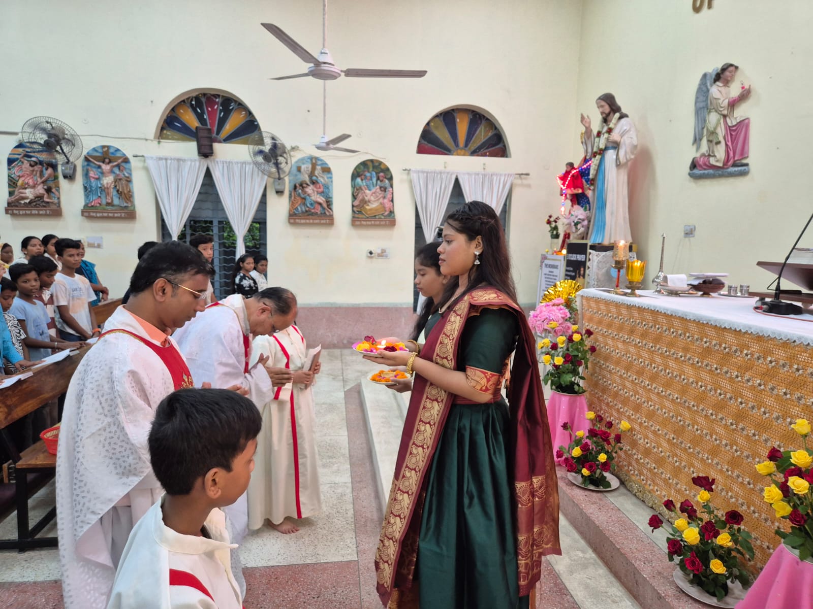 Sacred Heart Church Patliputra. Feast of the Nativity of the Blessed Virgin Mary celebrated at Sacred Heart Church, New Patliputra Colony, Patna with gaiety. Fr. K. P. Dominic SJ Principal , St. Xavier’s School, Patna was the main celebrant of the feast mass alongwith PP Fr. Martin Anand. A beautiful statue of Mother Mary was decorated with flowers, candles and lights, thanks to Glen and Glenda Galstaun and their staffs for making this occasion great. Our Parish Youths took charge of the Choir with melodious hymns . Meals to all Parishners distributed after the mass. PP thanked Fr. K P Dominic SJ and all the parishners for attending 9 days Novena prayers regularly . PP expresses his deep gratitude to the Sisters of Notre Dame.for arranging a meaningful and memorable Jubilee celebration Mass of 175 years..it was superb..